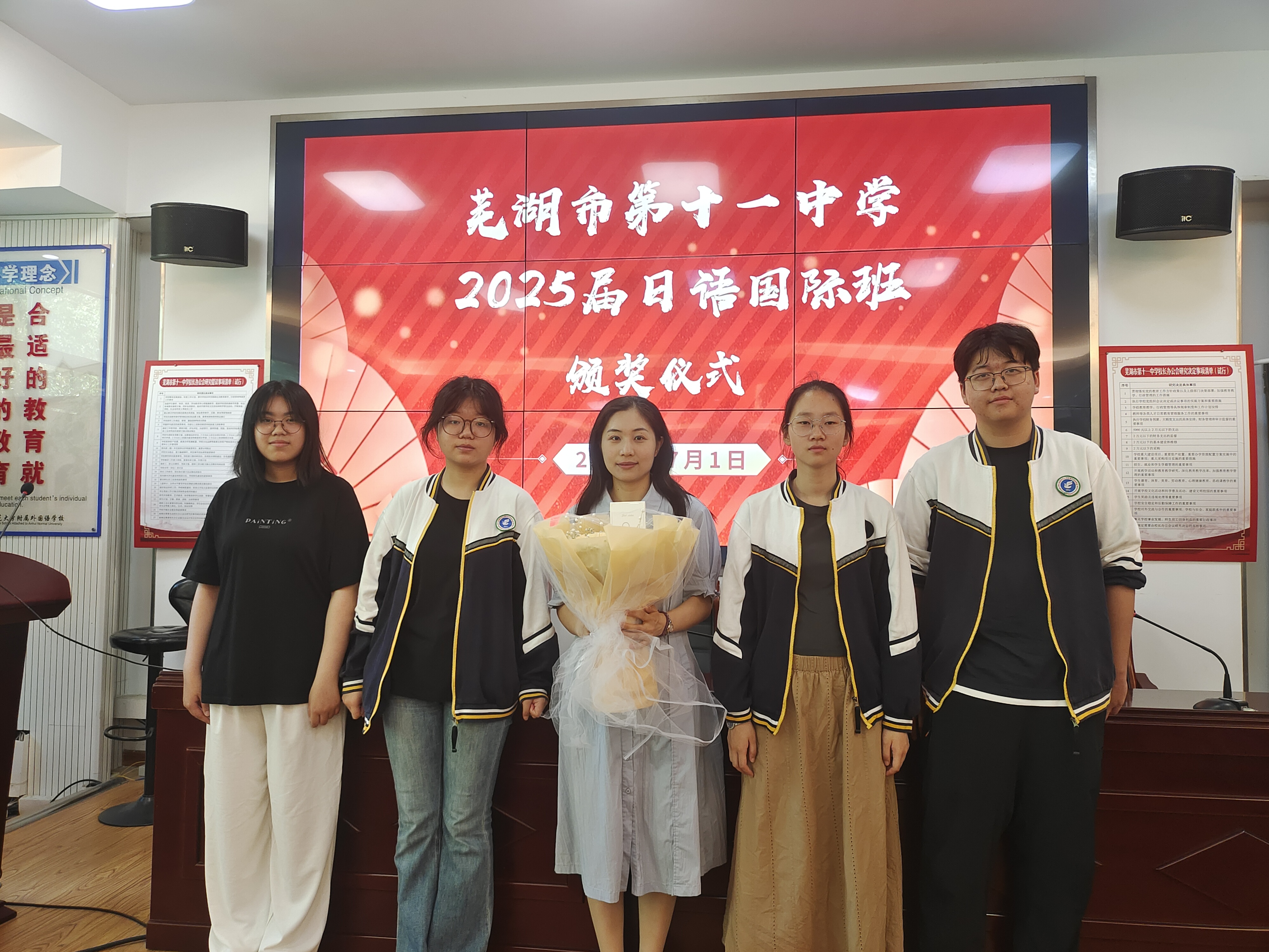 捷报频传!芜湖市第十一中学2025届日语班高考创佳绩,颁奖仪式温情启幕。