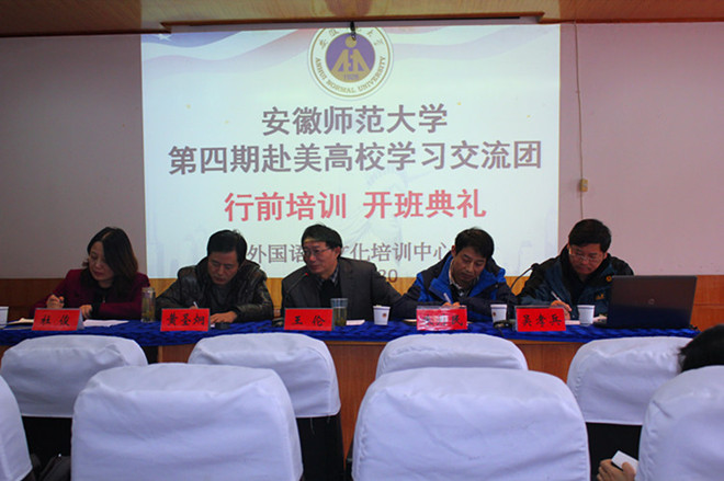 11月30日上午,在国际教育学院报告厅隆重举行了我校第四期访美教育代表团行前培训开班典礼。王伦校长出席了典礼并发表讲话。人事处处长朱为民,校外事办主任、国际教育学院院长黄圣炯,校外事办副主任、国际教育学院副院长杜俊和由我校16个学院20名学科带头人组成的访美教育代表团成员共同参加了开班典礼。